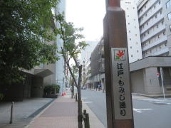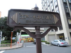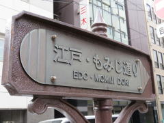 「江戸・もみじ通り 」は 昭和通りと首都高速環状線の間にある南北650mの道路(日本橋1丁目18番・日本橋郵便局裏~日本橋3丁目155番・八重洲通りの久安橋)の愛称として