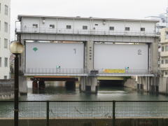 日本橋水門は 霊岸橋に大変近い上流側にあって 亀島川河口にある亀島川水門と共に 新川地区が水害に遭わないようにする役割を担っており 長さ30m