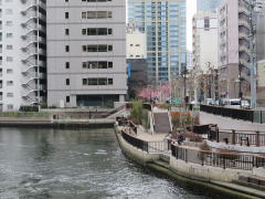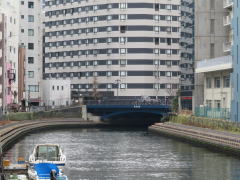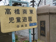 江戸期には「高橋」が亀島川に架かる最下流の橋であったため 上流にある亀島橋まで船が往来できるよう 橋脚の高い橋を架けたことが橋名「高橋」の由来という