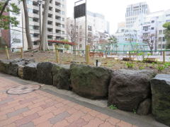 この公園で使用した石は 昭和60年 東京都が日本橋川右岸改修工事をした際 雉子橋付近から発生した石垣の一部です。