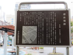 明治になり 越前守の屋敷地が「越前堀」という町名となりましたが 堀は次第に埋め立てられて行きます。大正12年(1923)の関東大震災以後 一部を残して大部分が埋め立てられ わずかに残っていた隅田川に近い部分も 戦後完全に埋め立てられました。その後 町名が改められ 「新川」となって現在に至っています。