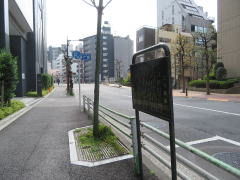 「所在地 中央区銀座1丁目25~27番地域」と案内板「蜊河岸」にあるが、同案内板の左下に記されている「蜊河岸」は中央区新富1丁目4番1~8号に相当すると思われる