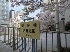左端は「新金橋」 右端は「新金橋児童遊園」の各フェンス