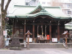神社は、寛永元年(1624)頃、稲荷橋南東詰に遷りましたましたが、明治元年(1868)現在地に移転し、今日に至っています。