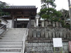 貞昌寺は、京急大津駅を下車後、京急線と海側で平行する道を馬堀海岸駅方向に進むと、右側に3番目の写真のとおり、電柱に掲げられた「貞昌寺への道案内」があるので、右折し、踏切を渡り、右折、左折で右側にある