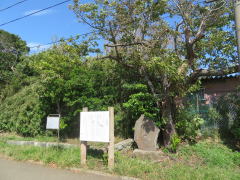 右:碑「三崎城跡」 中央:案内板「三崎城跡」