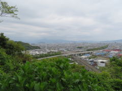 本丸跡東端から、晴天ならば富士山を望むことができる。