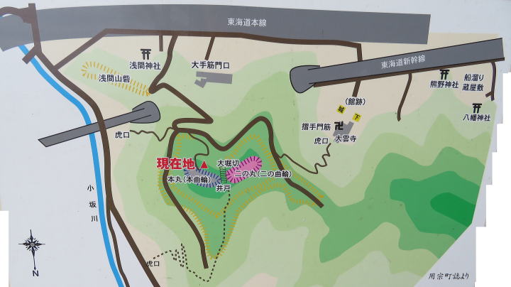 東海道新幹線が持舟城趾の下を走る