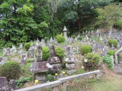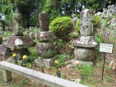 向井氏墓塔3基(向井正重・政勝・政綱)が五百羅漢に包まれるような形で通路沿いに並んでいる